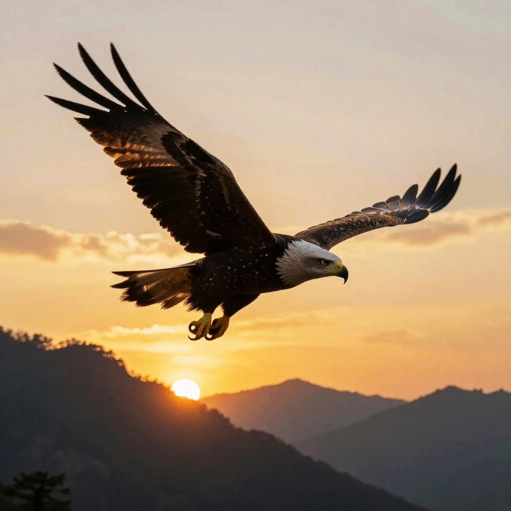 Raven wings open at dusk, silhouette against a fiery sunset, dynamic pose with feathers spread dramatically, soft glowing edges, moody and atmospheric, realistic bird anatomy with artistic flair
