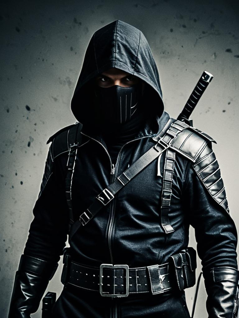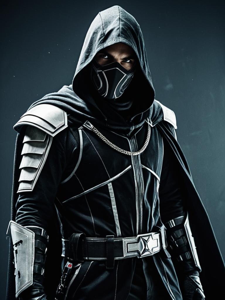 Man in Modern Assassin Costume, festival cosplay portrait, photorealistic realism
