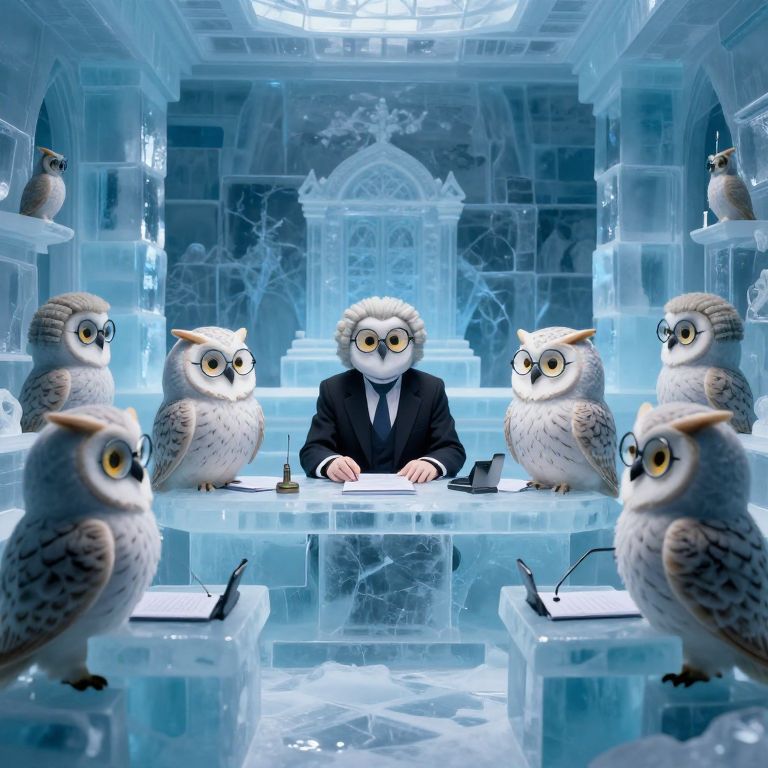 Owls Debating Dreams in Ice Chamber