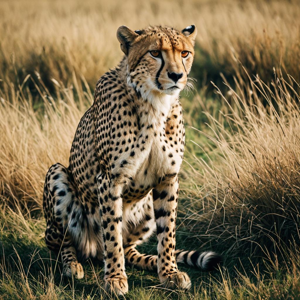 A breathtaking and ultra-realistic 8K photograph showcasing the raw power and majesty of a cheetah, the king of the grasslands.