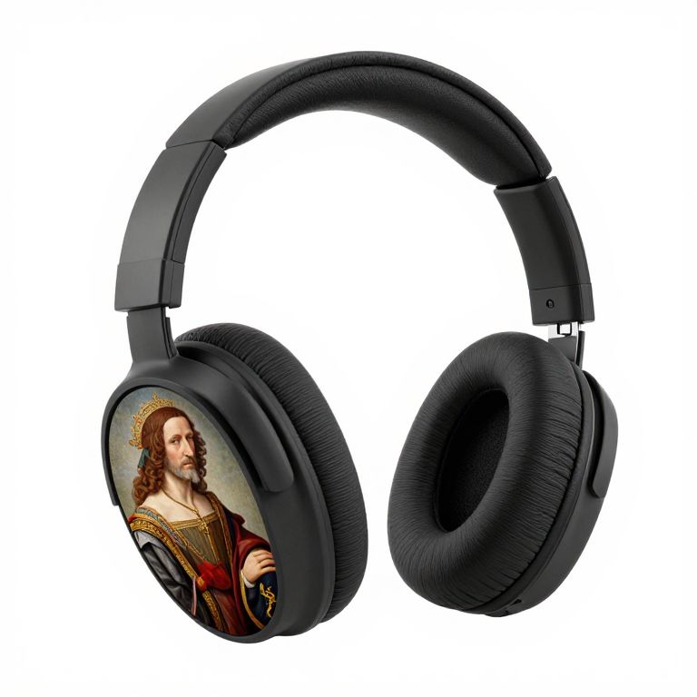 Game Art A headphone made by Leonardo da Vinci in the Renaissance era, hyperdetailed, 4k, isolated, easy to decoupage,