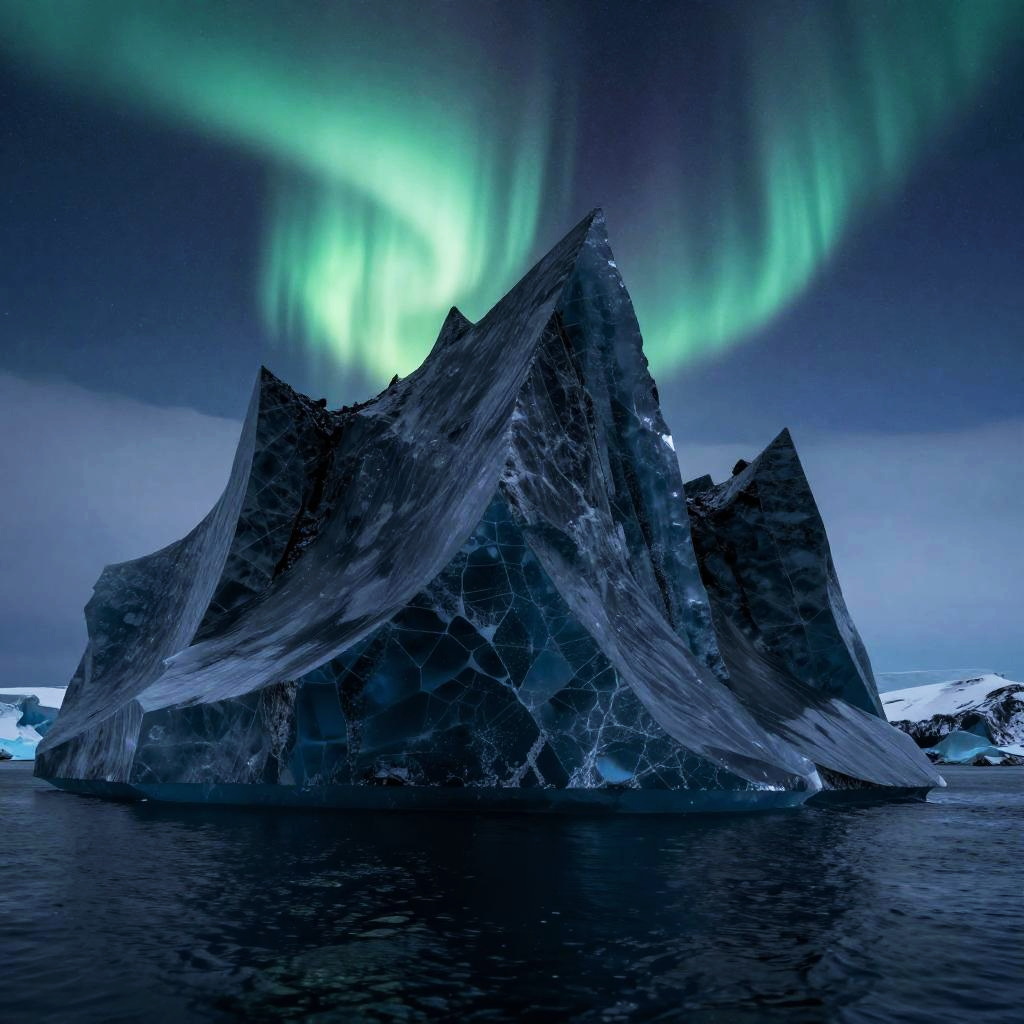 Jagged Iceberg Under Northern Lights