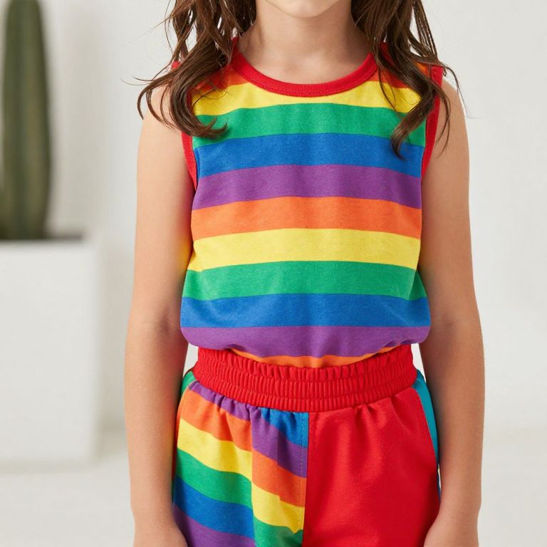 Rainbow Brite Outfit, a close up of a young girl wearing a colorful outfit