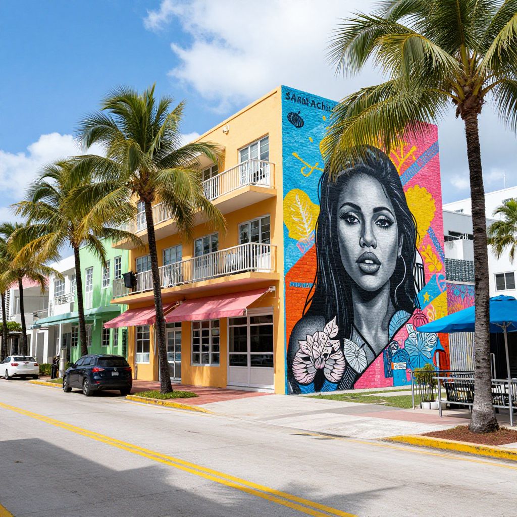 Colorful Wynwood Street with Woman Mural