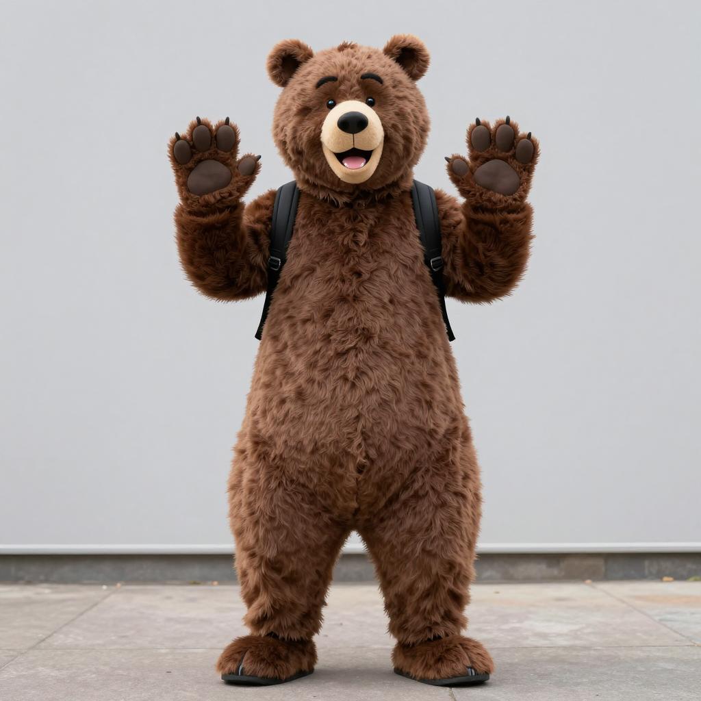 Man Wearing Fuzzy Bear Hat on Urban Street