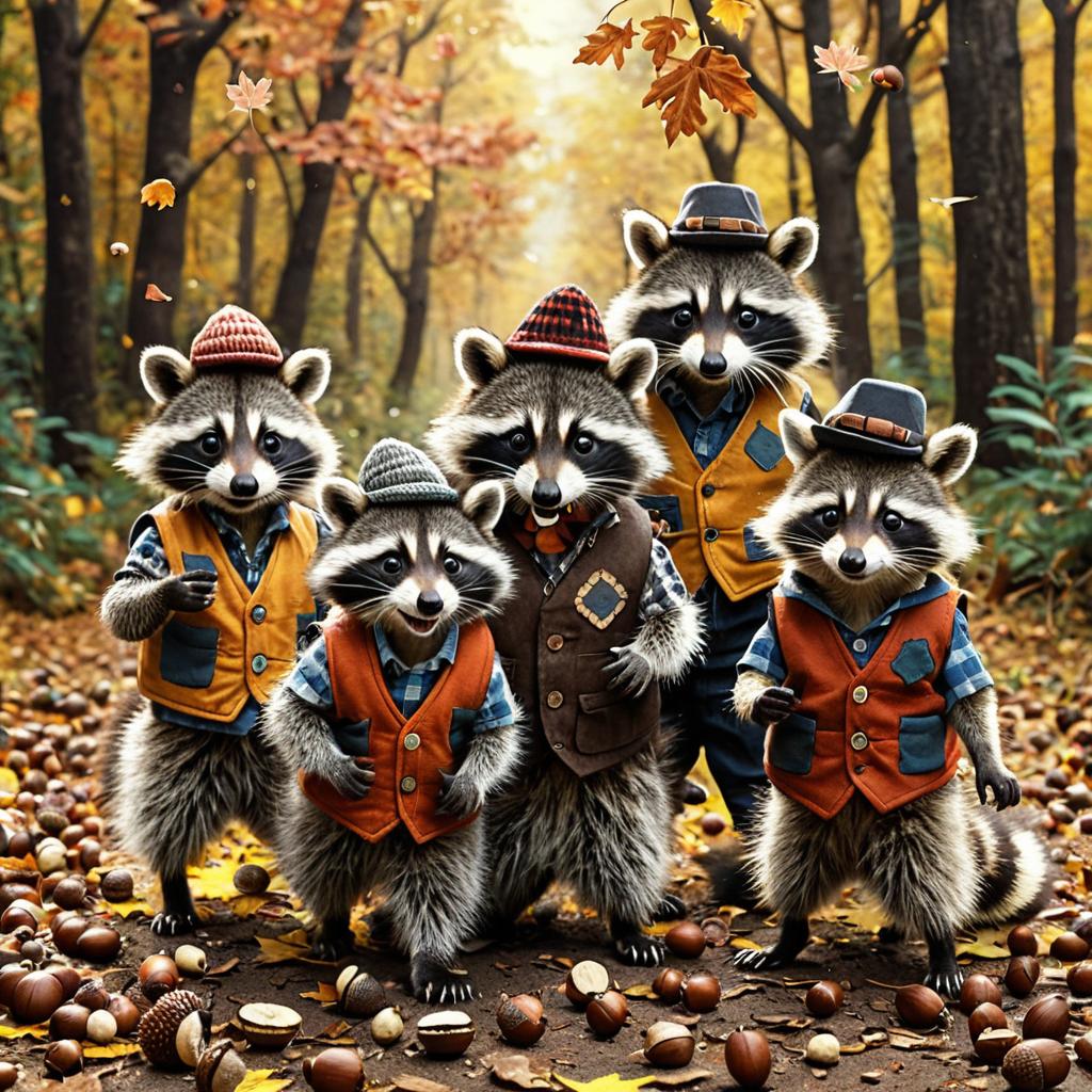 A couple of happy little robots, wearing shiny metallic armor with LED accents, playing in a lively tech fair with holographic displays, surrounded by floating neon drones, drawn in the lighthearted and family-friendly style of Motoo Abiko.