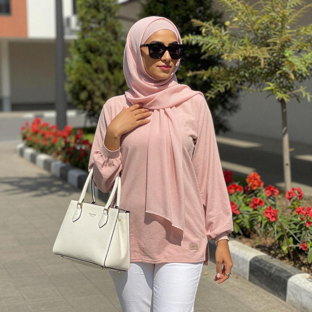 Stylish Woman in Pink Hijab Outdoors