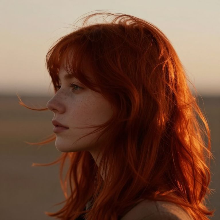 Fiery Red Hair on Stormy Coastline