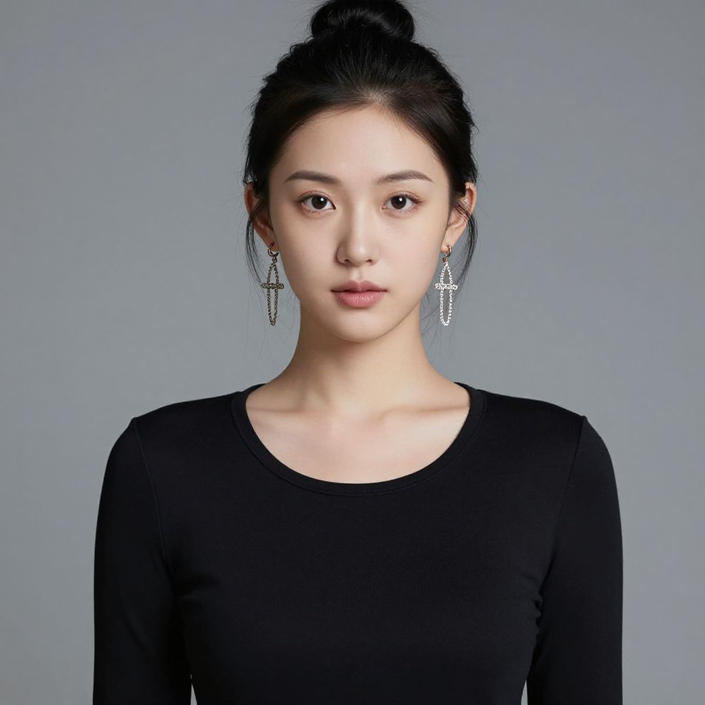 Asian Girl in Red Dress with Braids