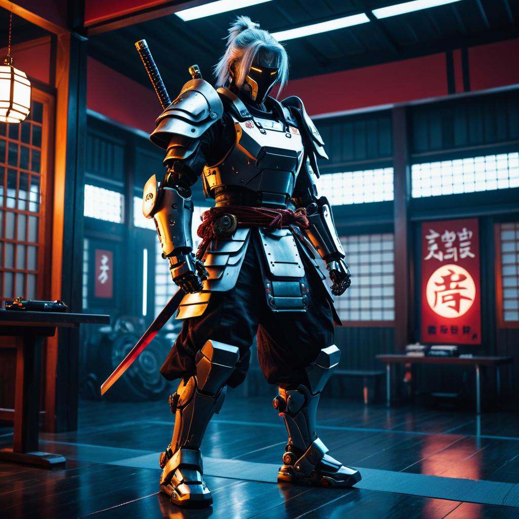 Futuristic Robotic Samurai in Dojo