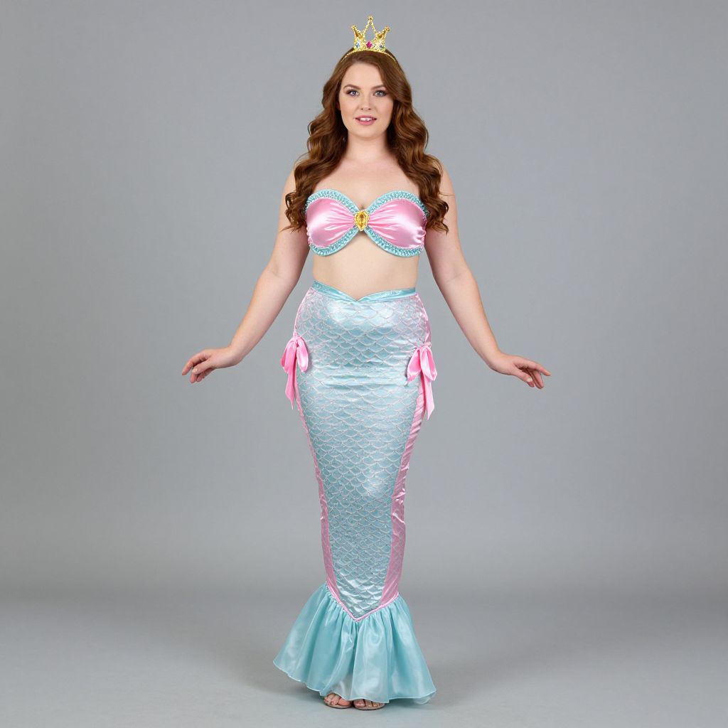 Plus Size Mermaid Costume, mermaid in a pink and blue dress with a crown