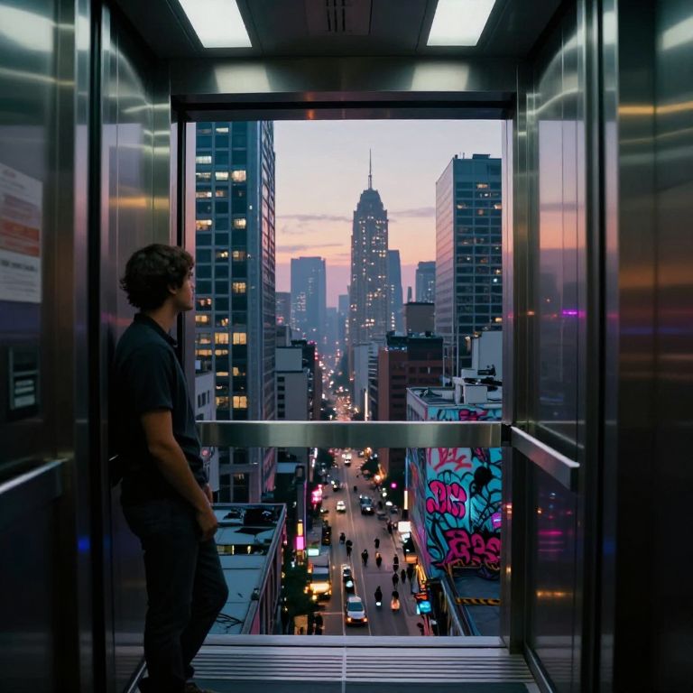 Craft an image embodying Hopper-esque realism, portraying a lone individual standing isolated amidst a lively cityscape at twilight. The scene should stir emotions of solitude and yearning, with the warm glow of sunset contrasting stark shadows that create mysterious silhouettes throughout the urban environment. Compose this from a vantage point above the street to accentuate the character's seclusion among the bustling activity below, blending influences reminiscent of classic film noir and modern digital art for enhanced intricacy and depth.