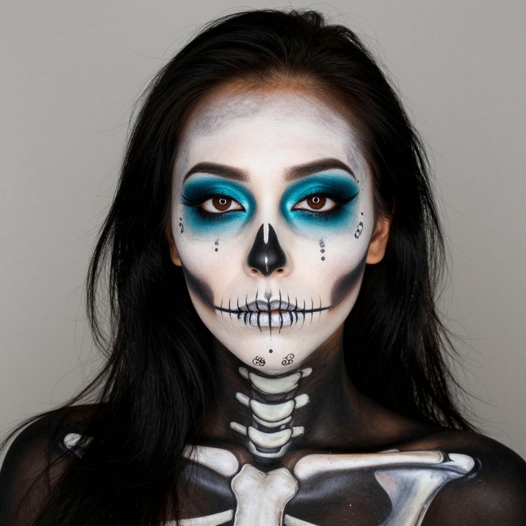 Intricate Skeleton Makeup with Teal Eyeshadow