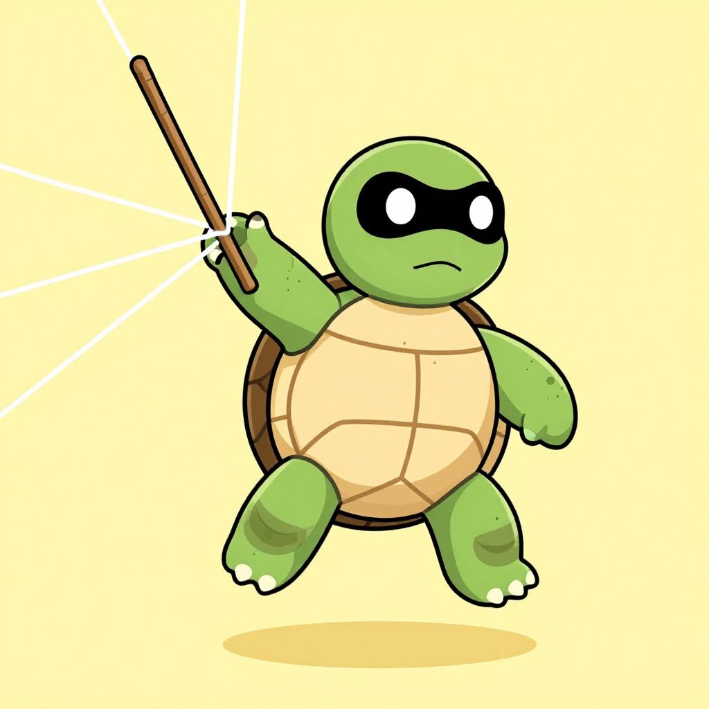"Lyocell a childish illustration of a cartoon superhero turtle that shoots webs out of a little stick on ahis belly flying in the air,"