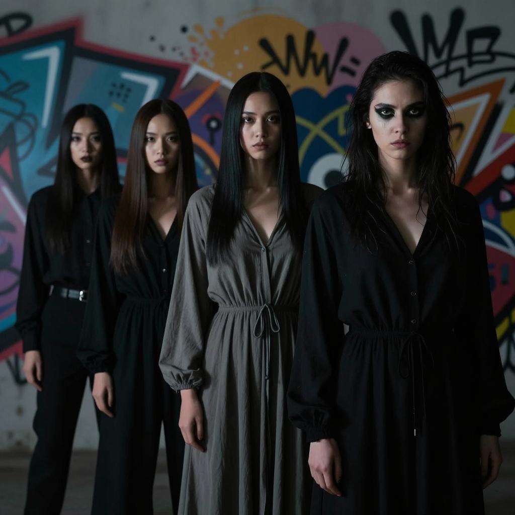 Intense Close-Up: Woman and Mysterious Figures
