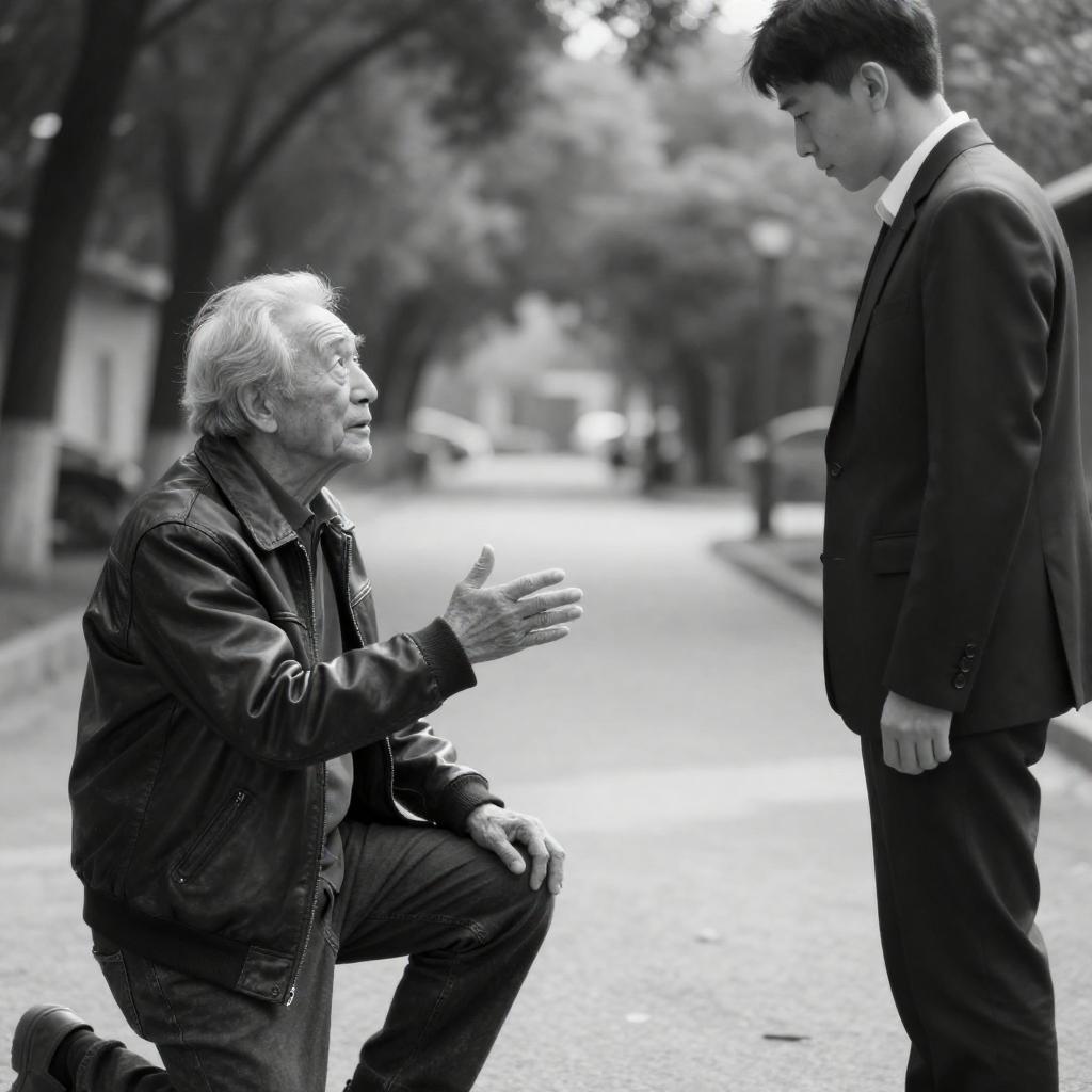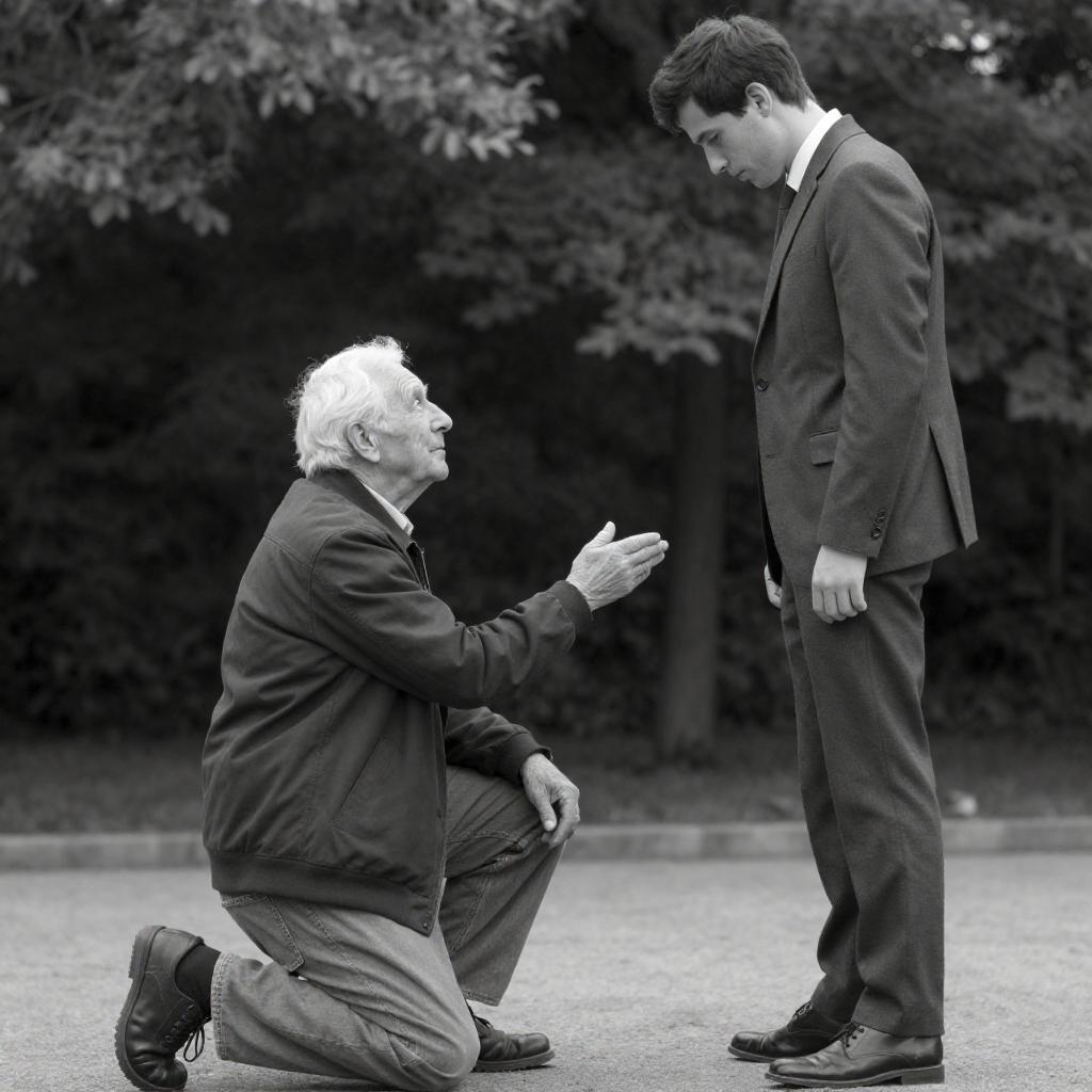 Black-and-White Elderly Man Conversation Scene