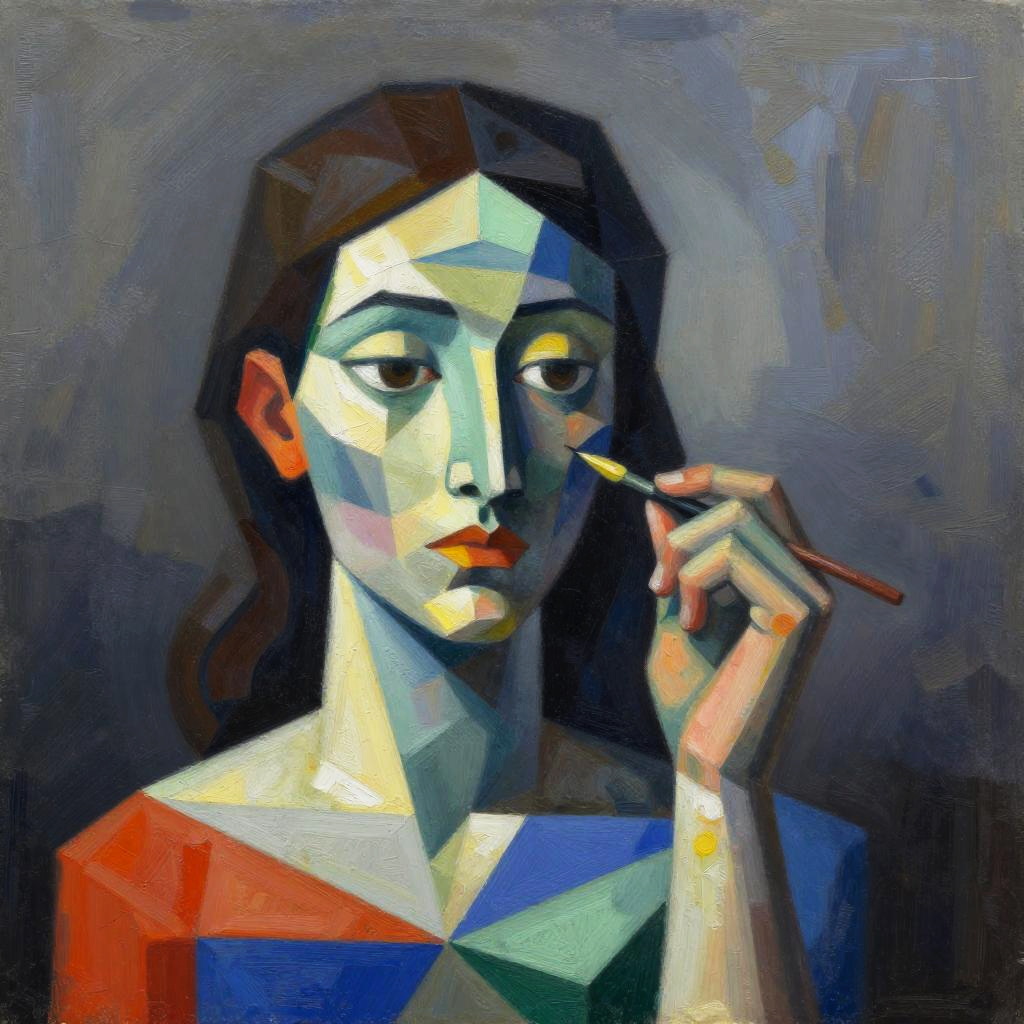 Realistic photo.An artistic visionary harnessing the essence of creativity, merging intricate details with primary colors, sculpting narratives that traverse the realms of cubism. With each stroke of the digital brush, forging a path illuminated by passion and dedication, crafting a Cubism legacy as boundless as the horizons of artistic expression. realistic photo