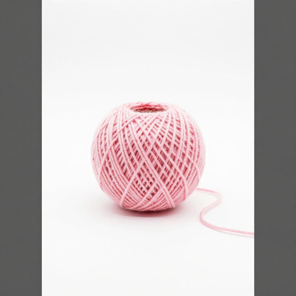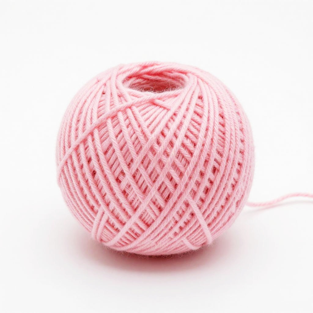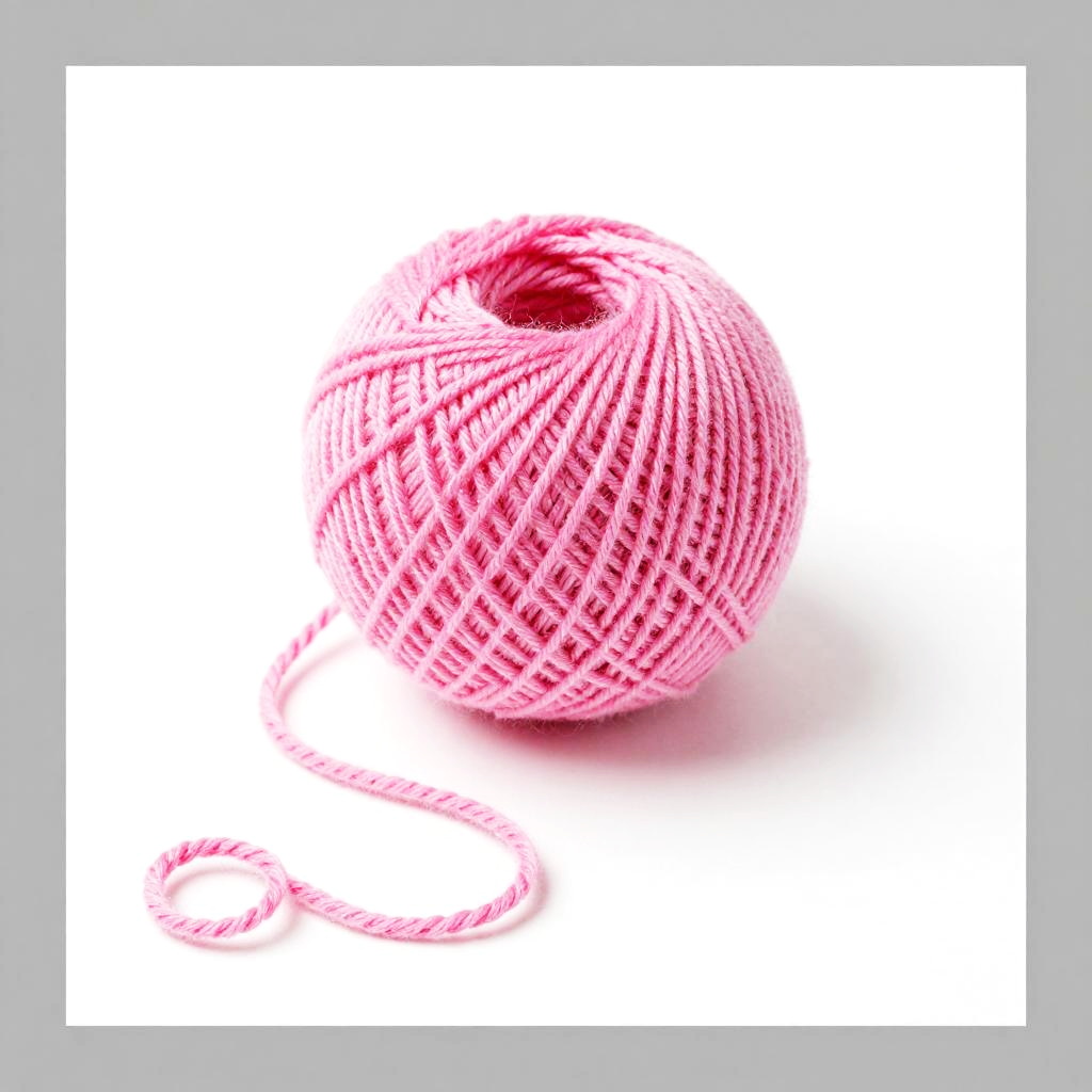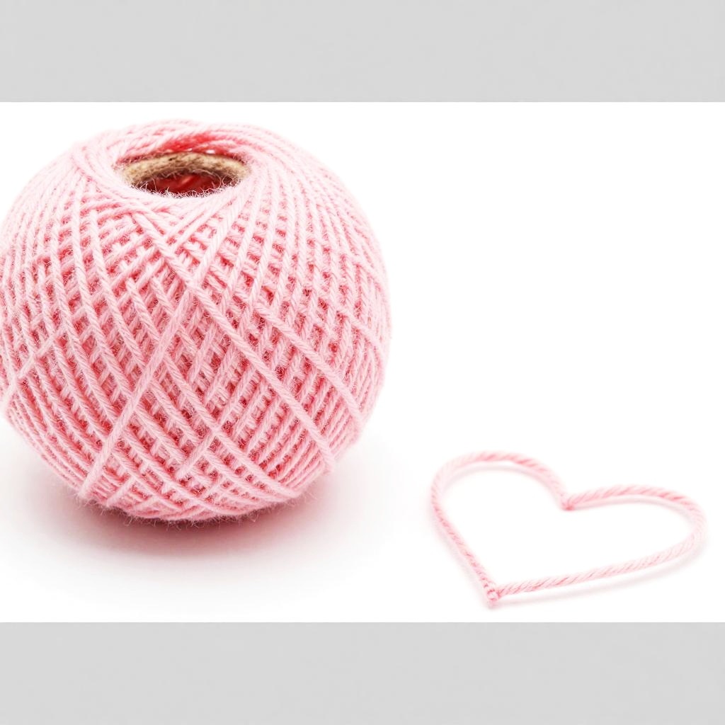 A colorful, stacked arrangement of yarn balls against a white background. The top ball is light blue, followed by a yellow-orange ball, a bright orange ball, and finally a pink ball. The bottom pink ball has a red shadow beneath it. The yarn balls are neatly stacked, with visible textures and twisted fibers. The image has a clean, minimalist feel.