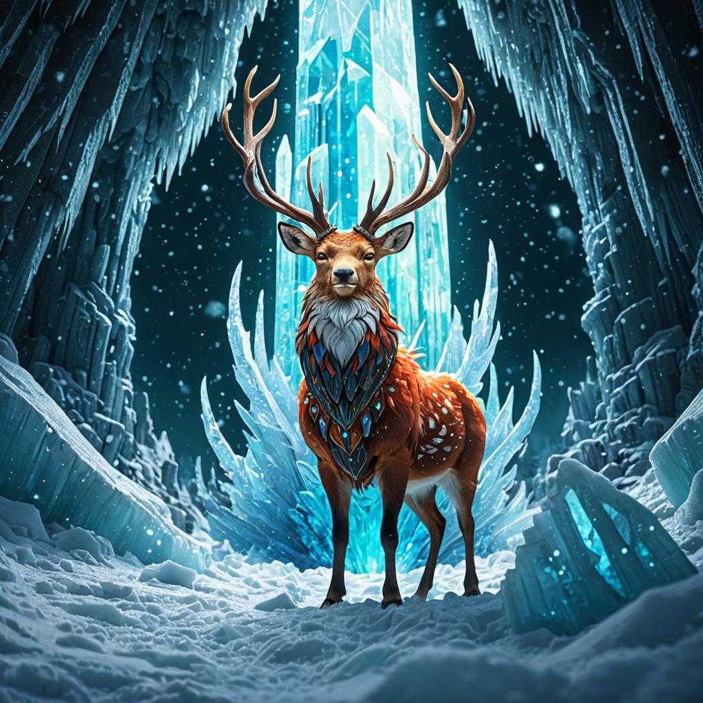 Crystal-Infused Phoenixstag in Frozen Cavern