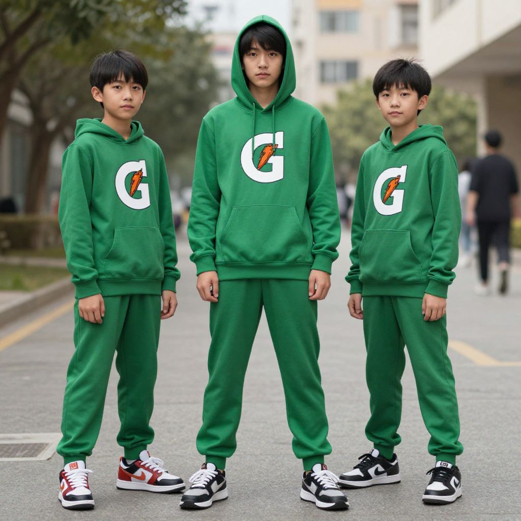 "green gatorade costume, male focus, hood, solo focus, sneakers, multiple boys, shoes, looking at viewer, cosplay, full body, standing, realistic, hoodie, hood up, 1boy, 2boys Realistic photo of casual sexy person with pretty face"