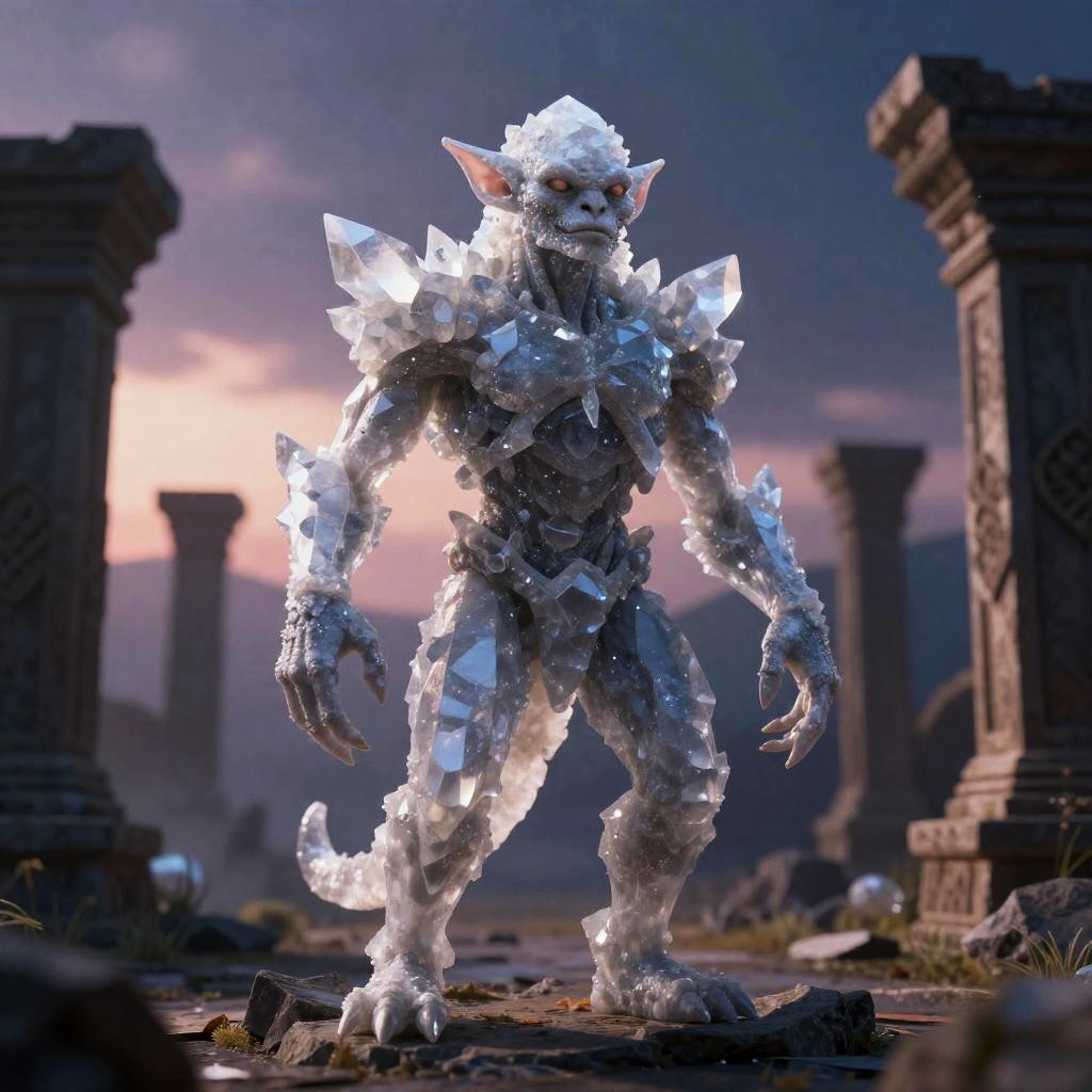 Shimmering Quartz Golem in Enchanted Realm
