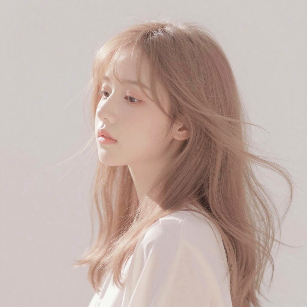 Pastel:af9ji_y9zpm= portrait of a serene young woman with flowing hair in pastel tones, delicate textures and subtle shadows enhancing the softness and dreamlike quality, set against a minimalist background with muted colors
