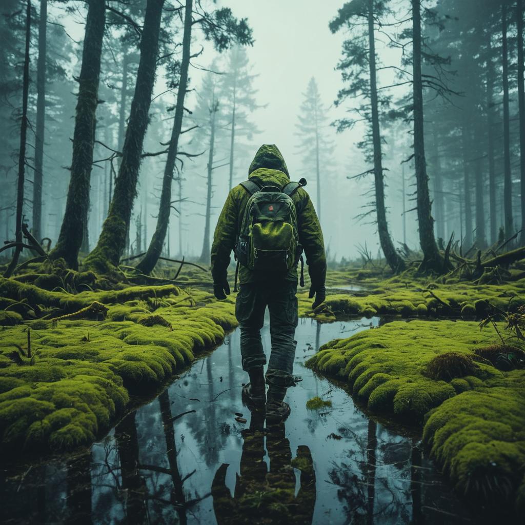 Elderly Man on Misty Mountain Trail