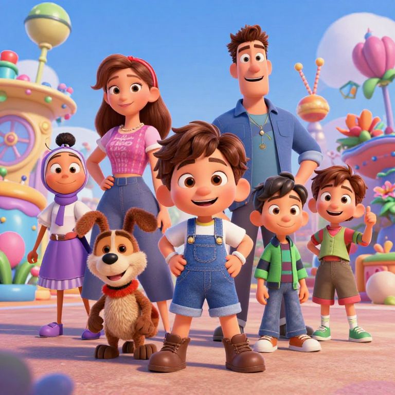 AI Disney Pixar poster generator depiction, an advanced AI creatively designing posters for family-friendly animated movies, blending whimsical storytelling elements with Pixar-inspired character designs and dynamic compositions