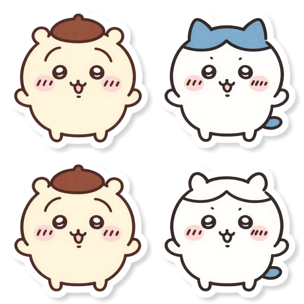 Kawaii character, sticker, detailed realistic professional art masterpiece sticker set