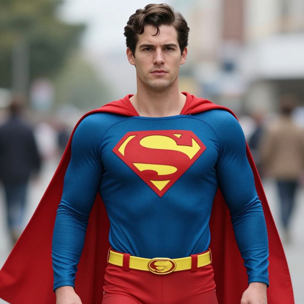 Man in Superman Costume on Street
