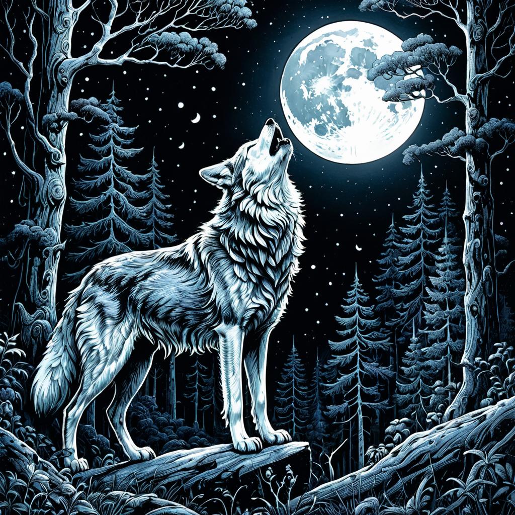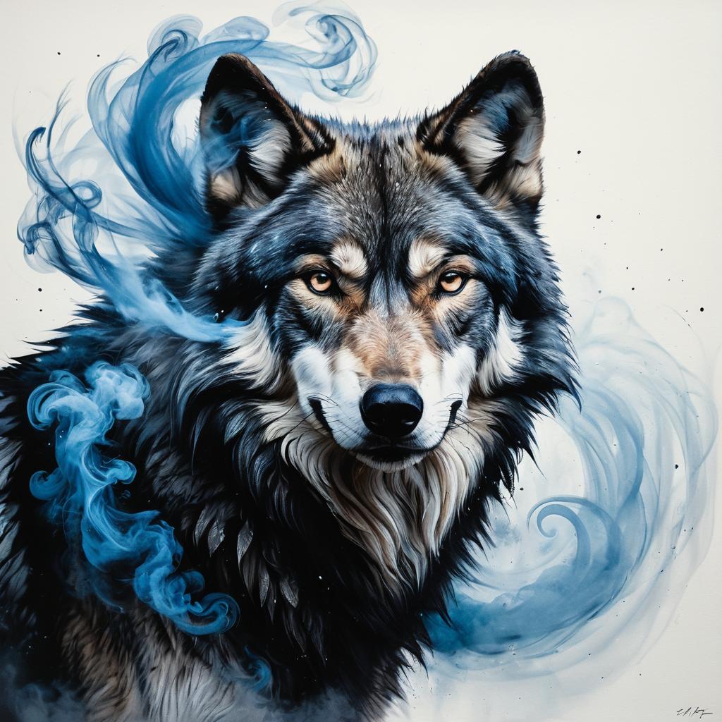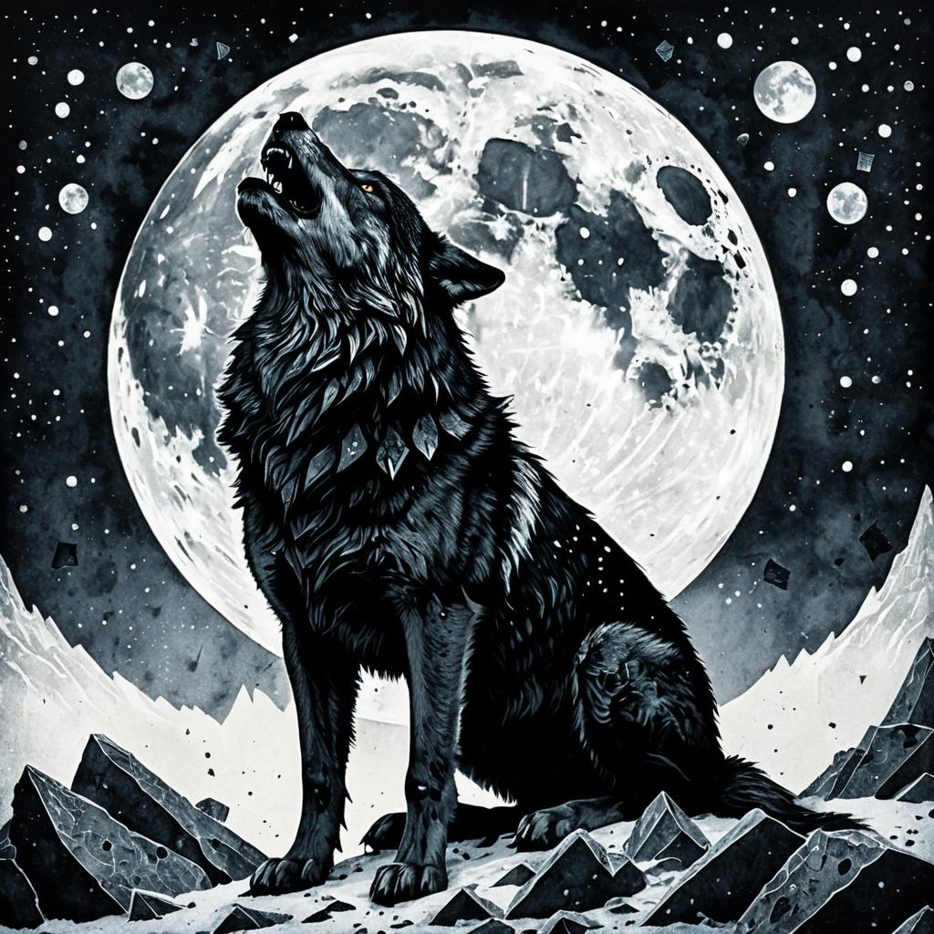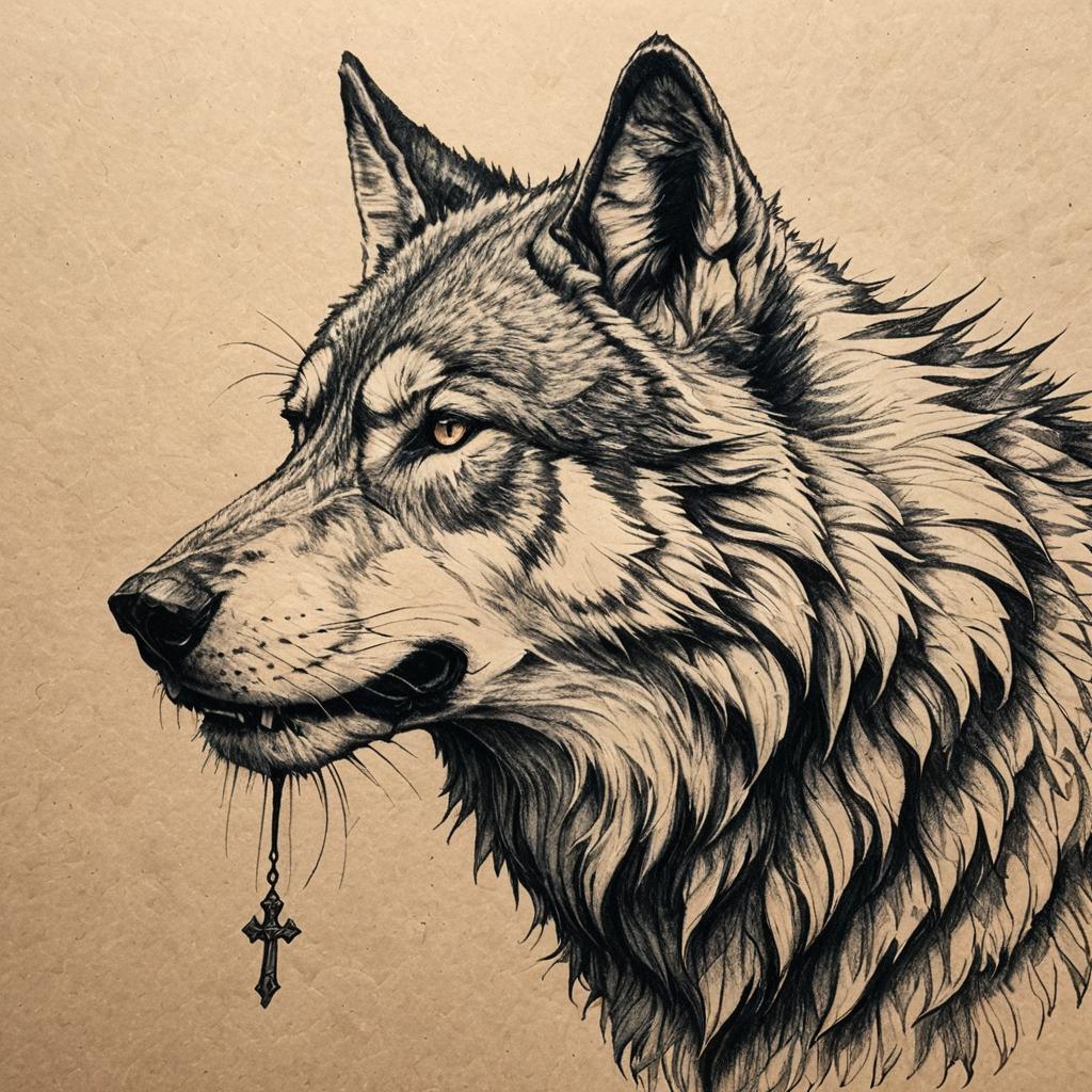 Detailed Pencil Sketch of Giant Wolf with Cross Necklace