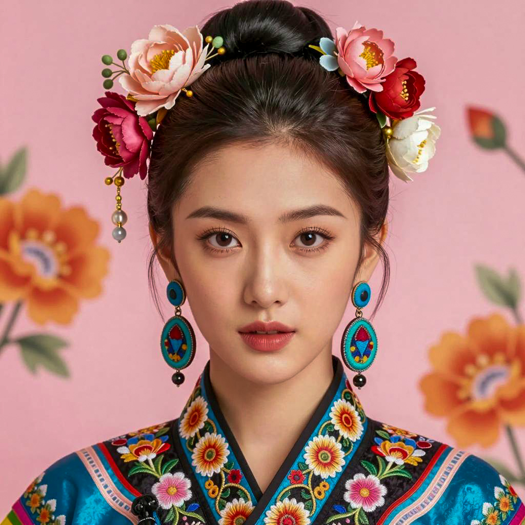 Vibrant Floral Portrait of Asian Woman