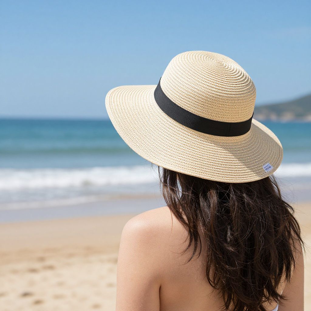 Woman in Straw Hat on Beach