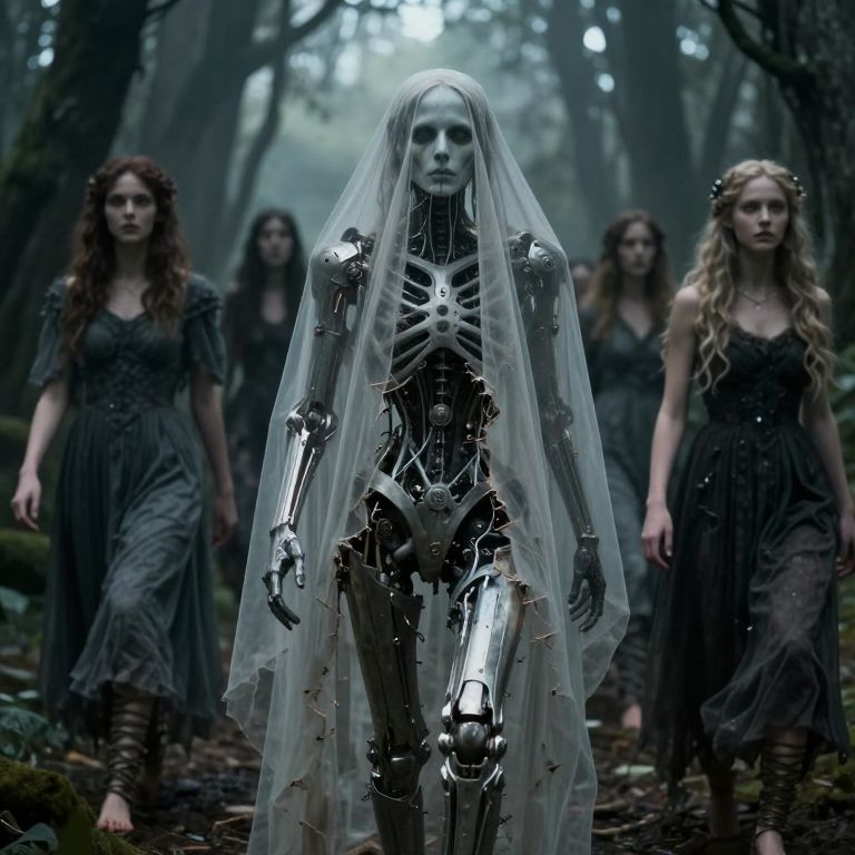 Mechanical the veil between the dead and the living shredded, fair folk crossing over, beautiful, photo realistic, hyperrealistic, hd , 8k magical realistic,