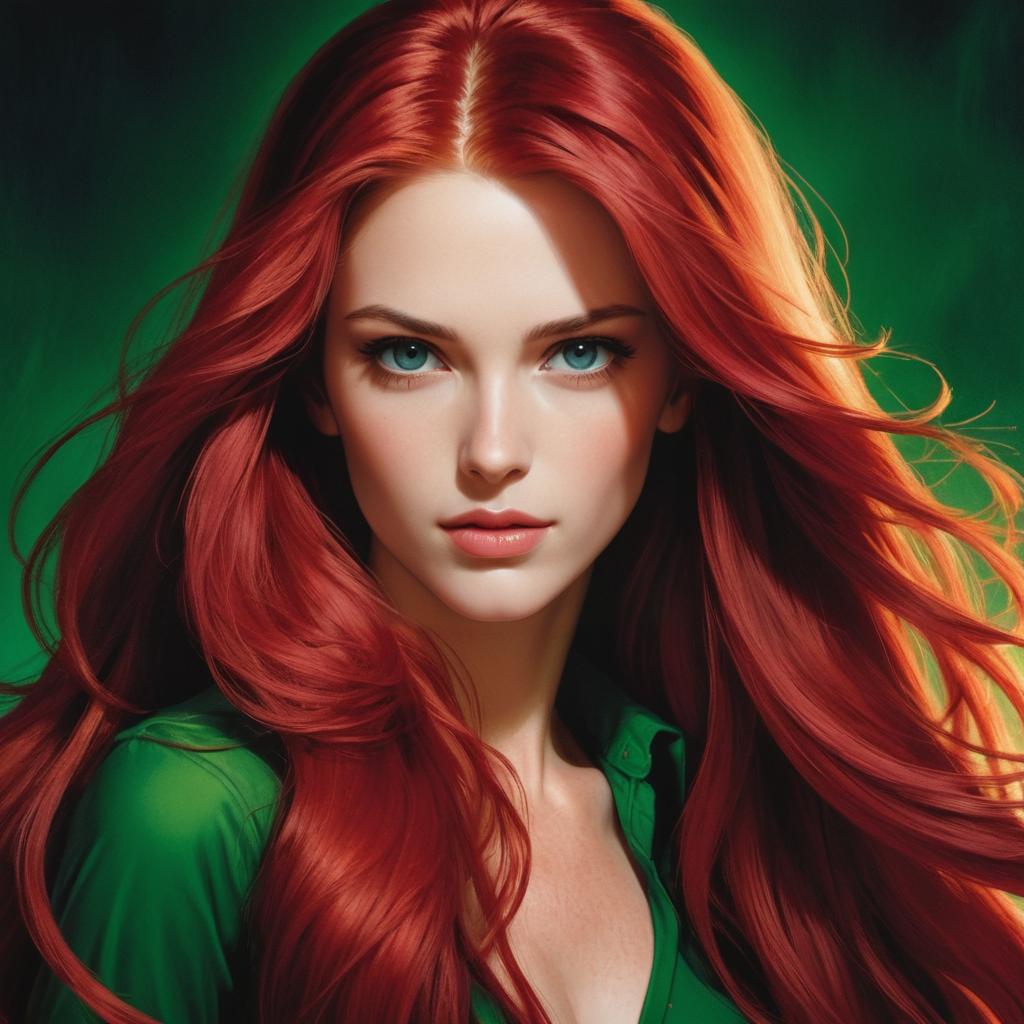 Albe: portrait of a beautiful woman, long crimson hair, green eyes, by archie comics