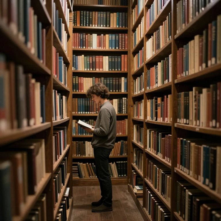 In the hushed embrace of endless shelves, a seeker delves into the whispered secrets of bound knowledge, where the weight of history and the promise of discovery converge in a symphony of solitude and enlightenment.