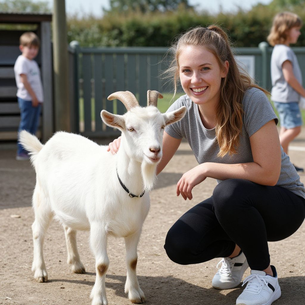 Smiling Woman with Goat Sanctuary Visit