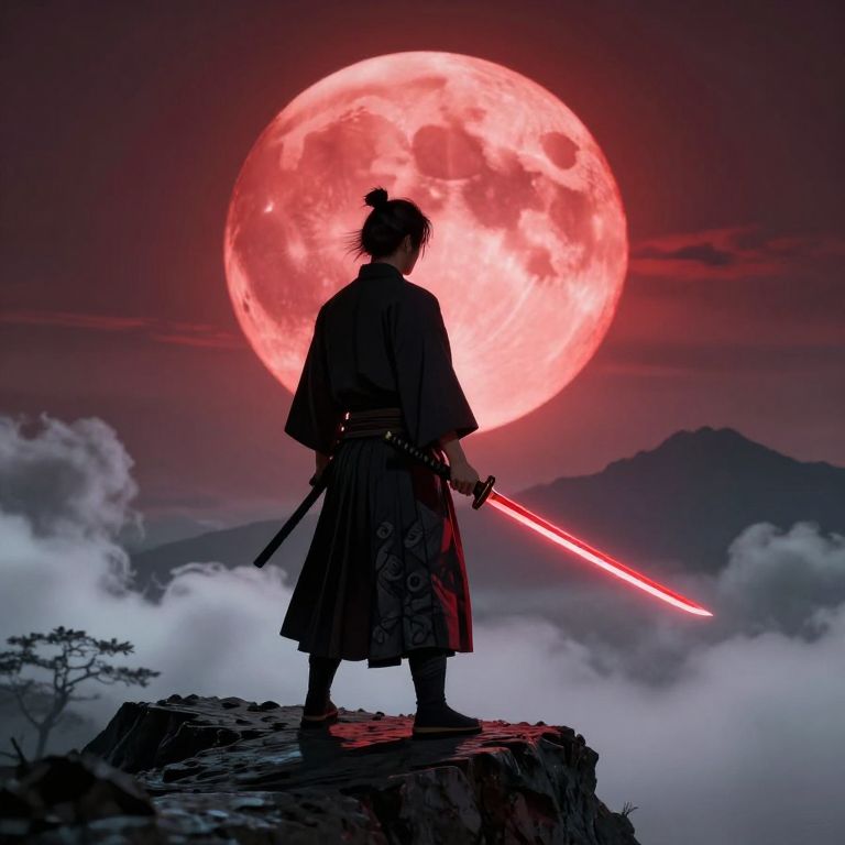 Epic Samurai Under Red Moon