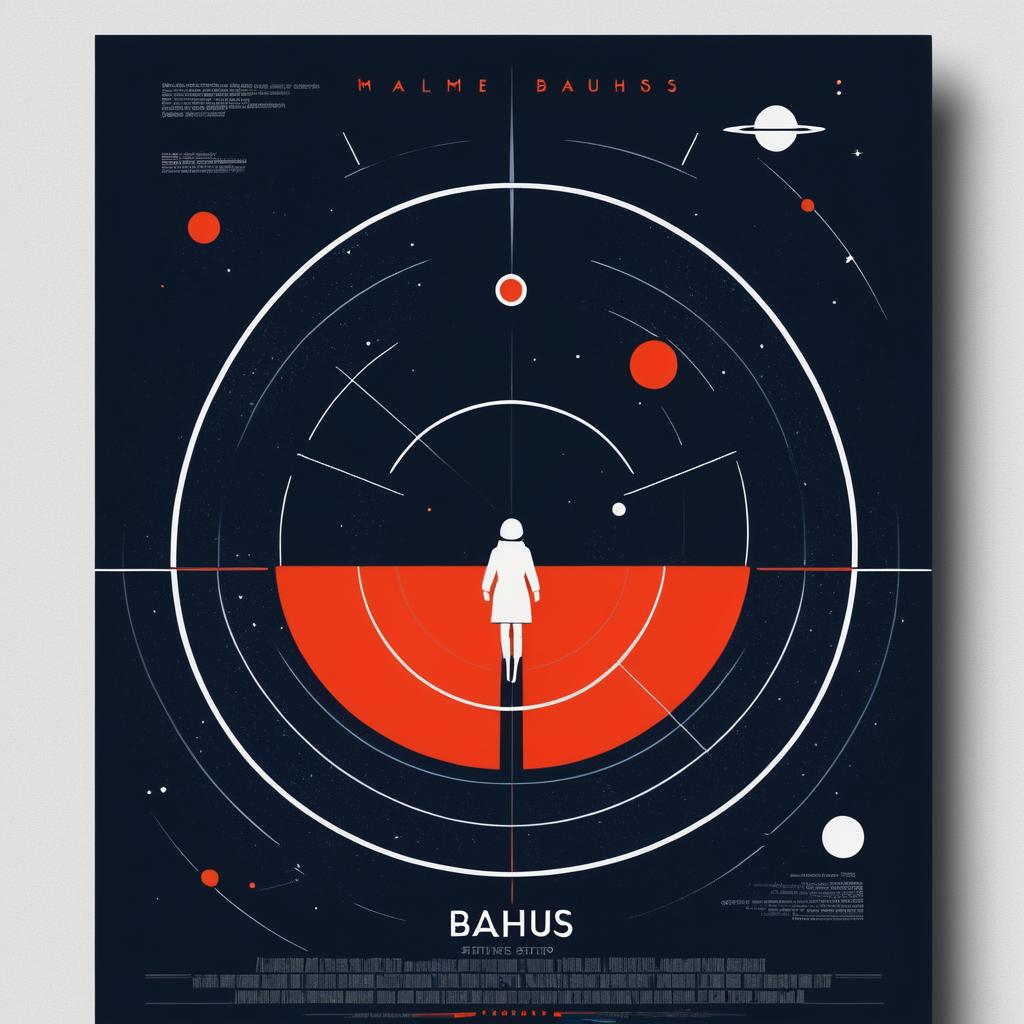 Space thriller movie poster, masterpiece, best quality, 1girl, Bauhaus, shapes, lines, abstract