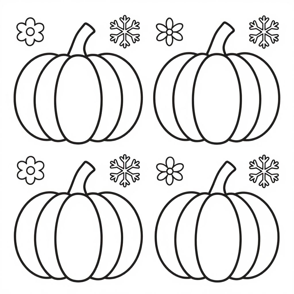Black coloring pages for preschool with seasonal themes like pumpkins for fall, snowflakes for winter, and flowers for spring, featuring large bold shapes and cute elements to encourage creativity among young children in early education.