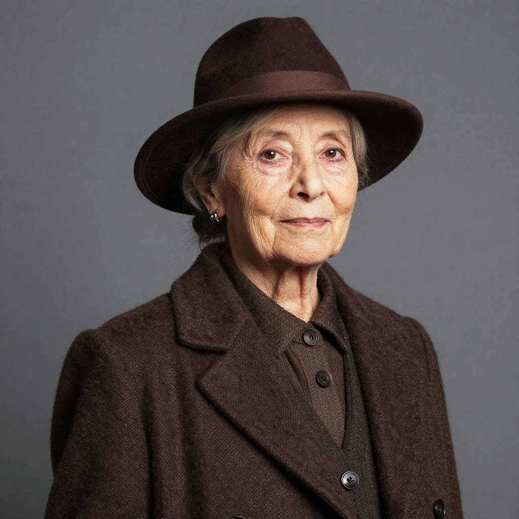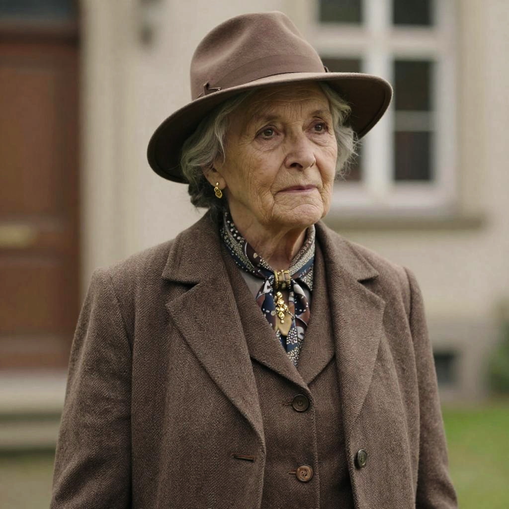 Elegant Older Woman in Brown Hat and Coat
