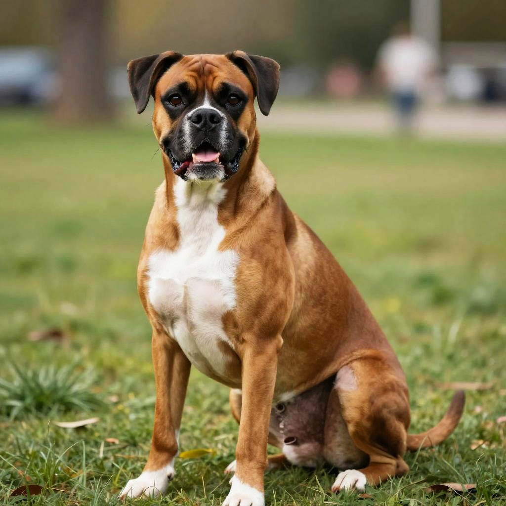 Perra boxer, close-up portrait of a female boxer dog with expressive eyes, soft natural lighting, high resolution, studio background