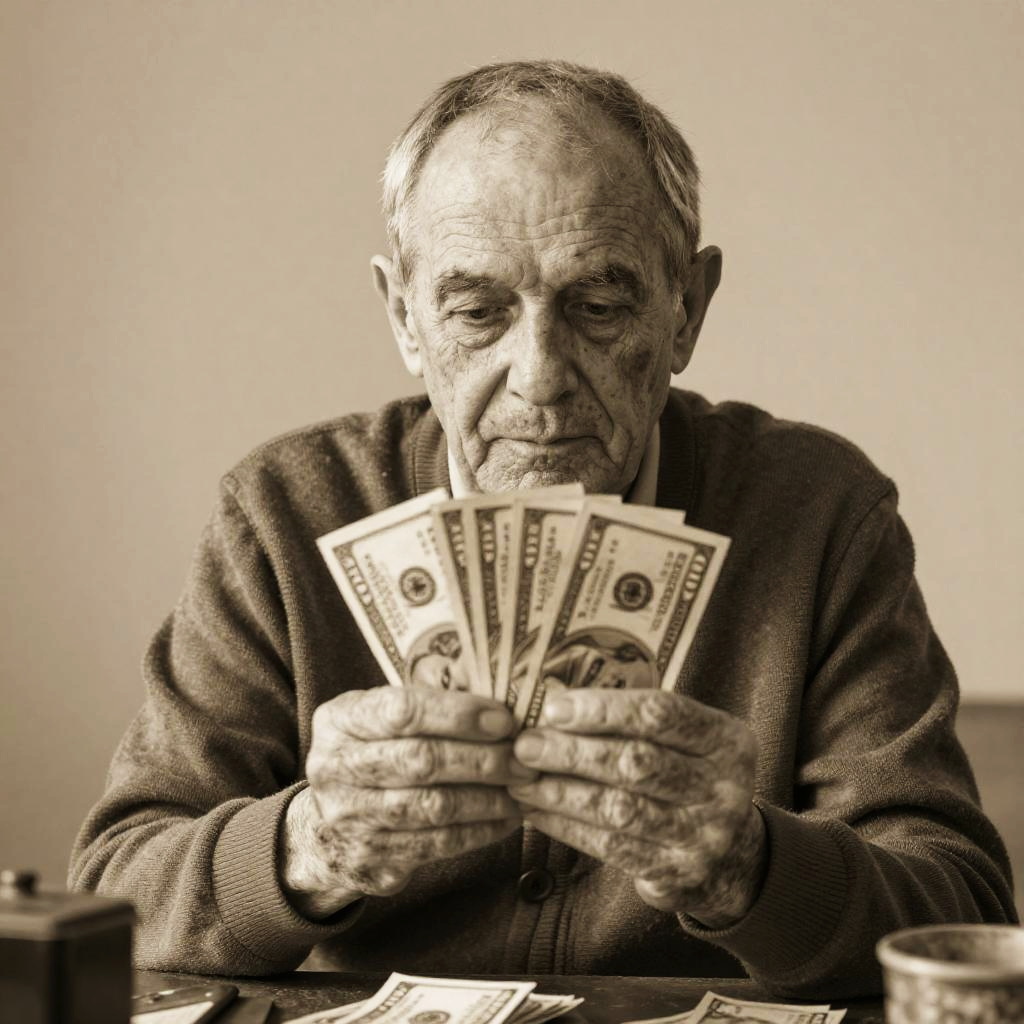 Old Man Flaunting Wealth Dramatically