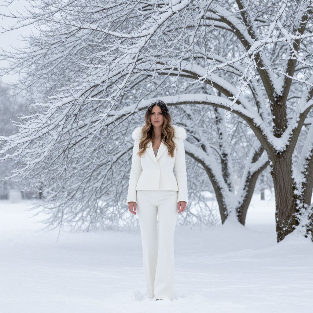 Woman in White Snow Suit Outdoors