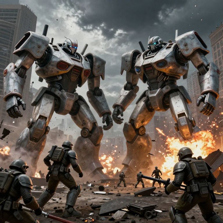 Epic Robot Battle in Gritty Cityscape