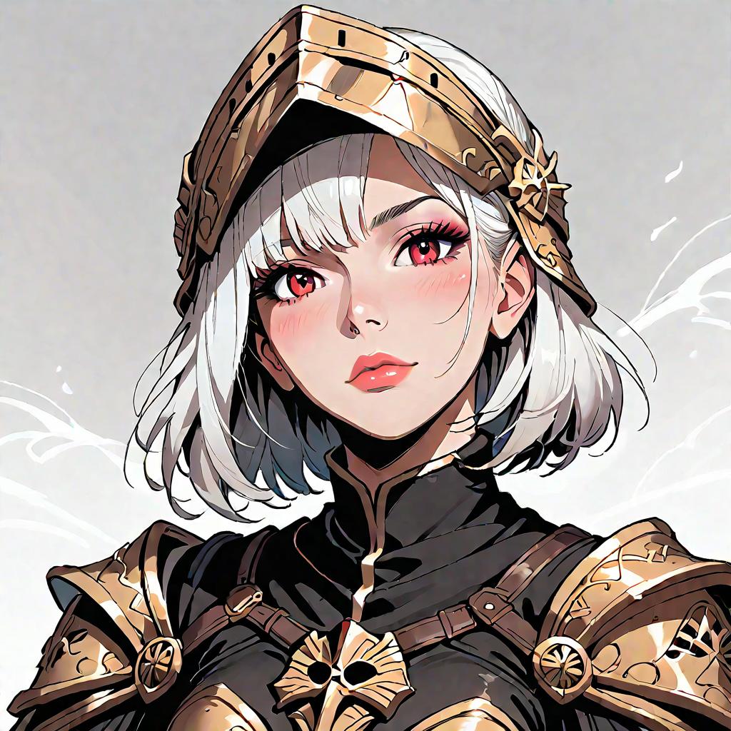 Score_9, score_8_up, score_7_up, female, dark knight, long white hair, beautiful face, bulky, heavy, visor helmet, medieval, dark theme, armor, golden sword, golden trim
