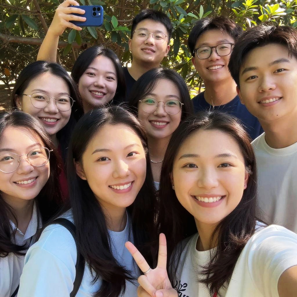 Group of Young Adults Taking Selfie by River