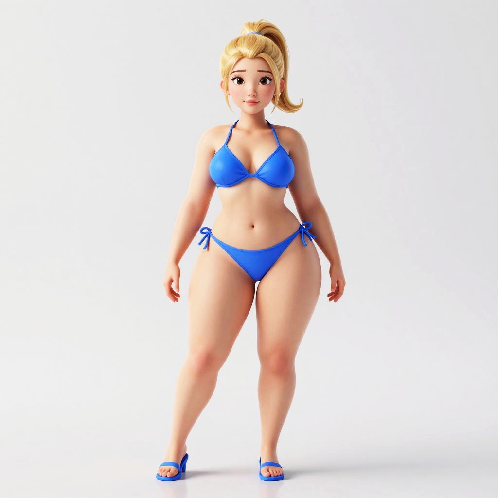 Miniature Girl in Blue Bikini at Bathroom Sink