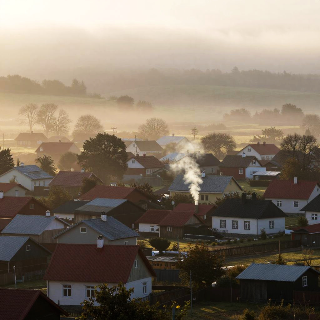 Sunny Village Under Clear Blue Sky