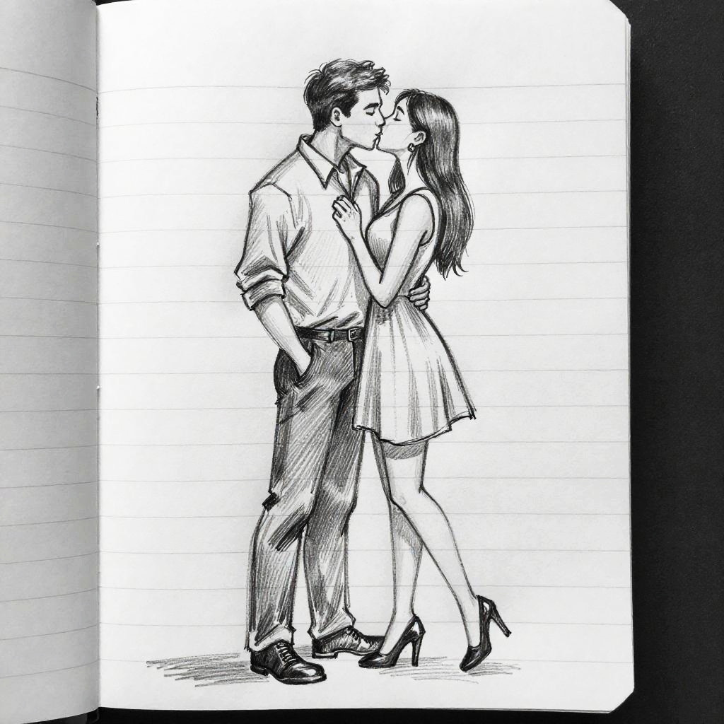 Romantic Pencil Sketch on Notebook Paper